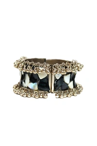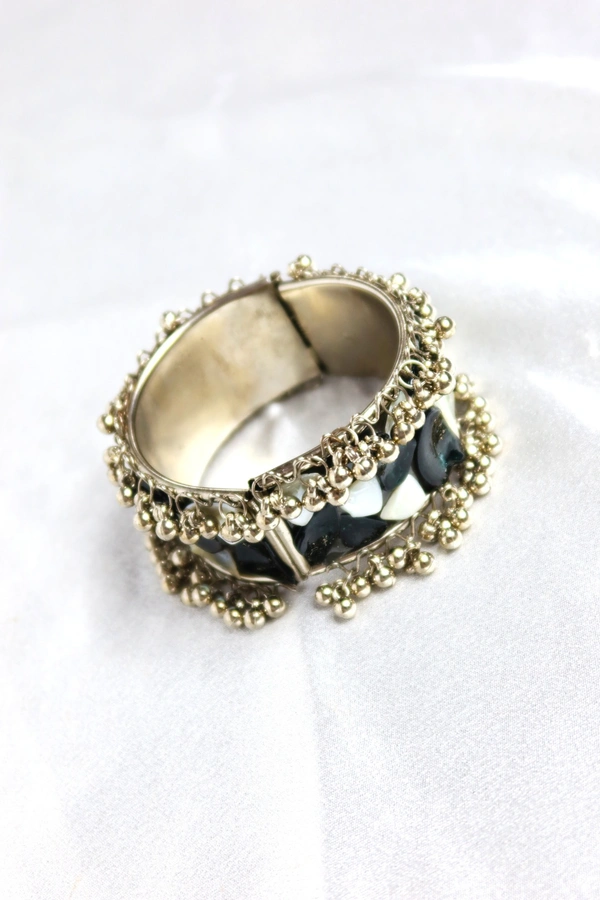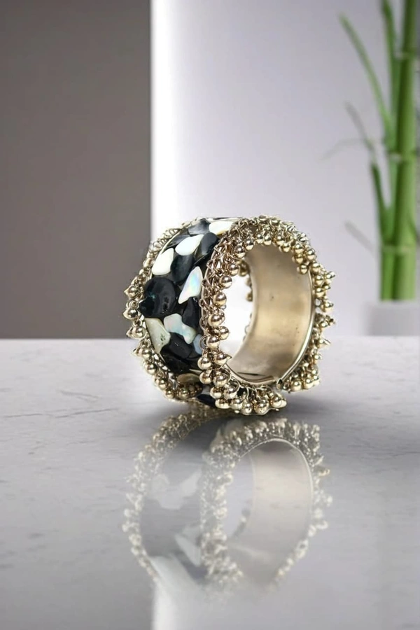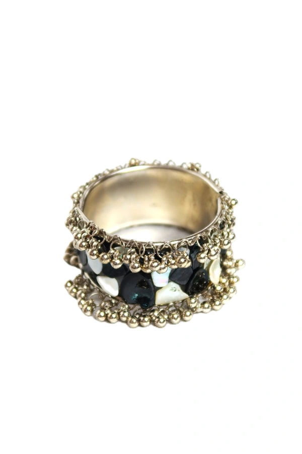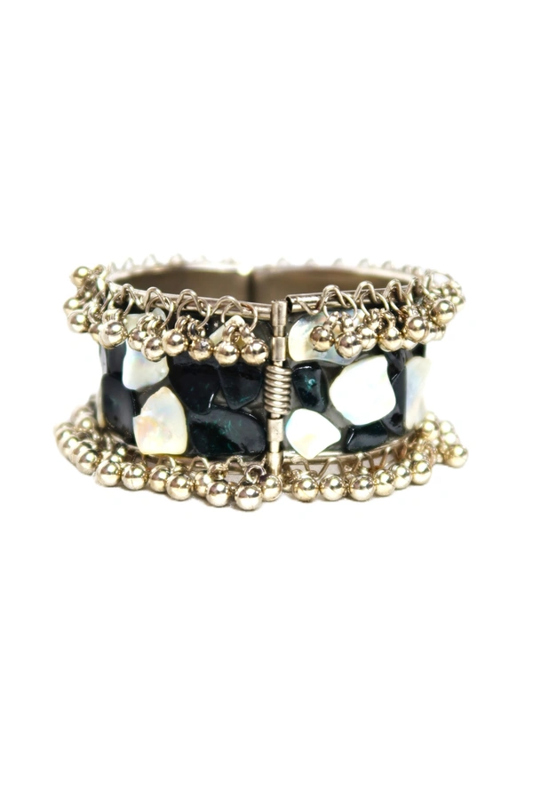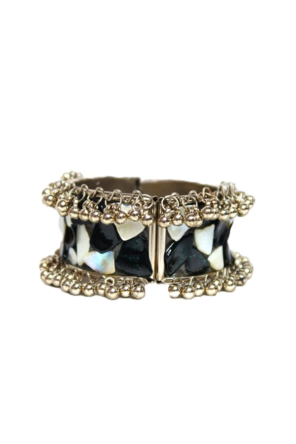 Adjustable Wide Cuff Bracelet – Black and White Shell Inlay with Vintage Look