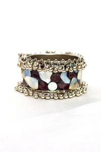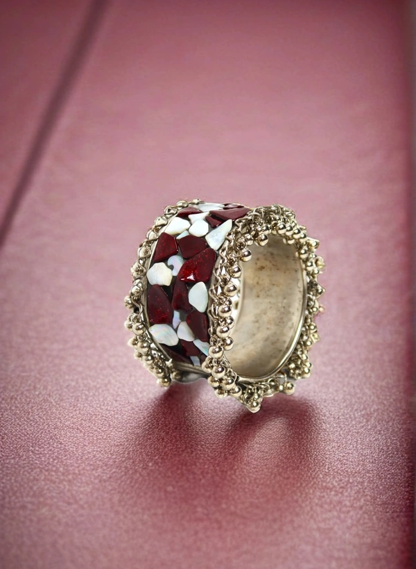 Adjustable Wide Cuff Bracelet – Red and White Shell Inlay with Vintage Look