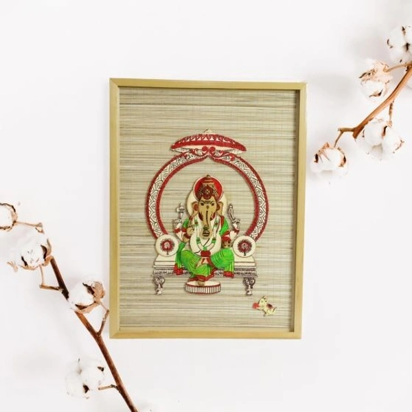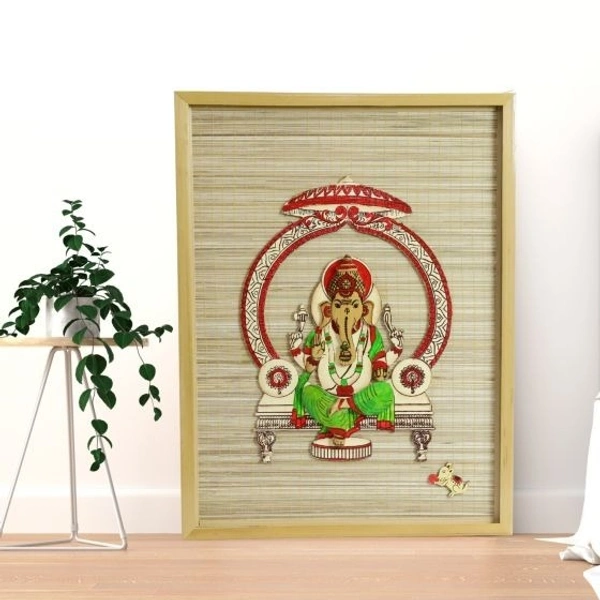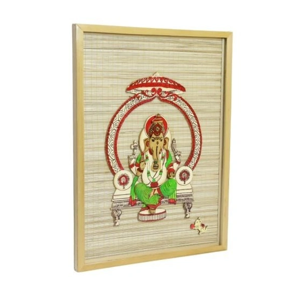 Bamboo Handcrafted Base Shree Ganesh Wall Hanging Frame Rectangular Shape for Home, Office/Eco Friendly Product.