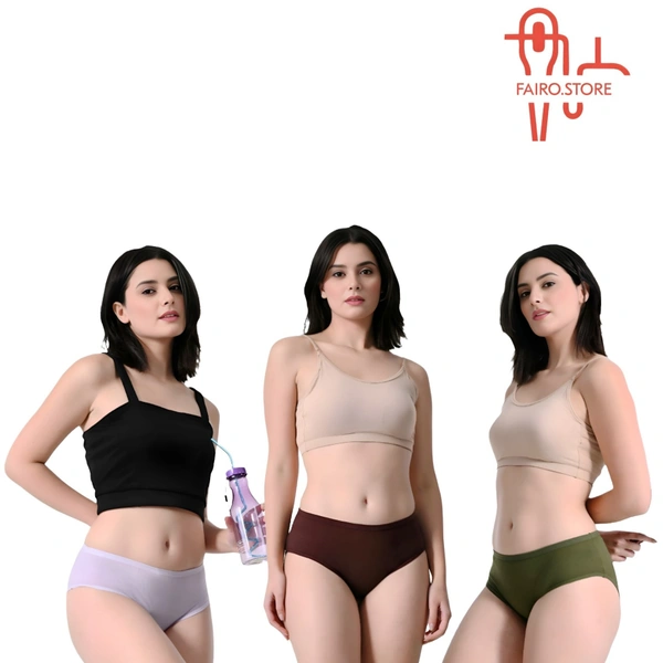 The FAIROSTORE Women's Cotton Panties Brief Pack of 3 Combo is the ideal fusion of style, durability, and comfort. This carefully constructed underwear set will elevate your everyday basics and offer a smooth, opulent experience. These panties feel soft and soothing against your skin since they are made of premium, breathable cotton fabric, which makes them perfect for all-day wear. FAIROSTORE promises a long-lasting addition to your underwear collection in addition to comfort and durability. Three fashionable and adaptable briefs are included in the bundle; they all have a traditional cut that offers complete coverage and a nice fit. You may move freely and comfortably without feeling constrained thanks to the elastic waistline. FAIROSTORE is aware of how important it is to embrace your unique style,
