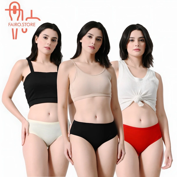 FAIRO STORE Women's Cotton XL Size 95 cm Panties, Solid Hipster, Multicolor, Pack of 3