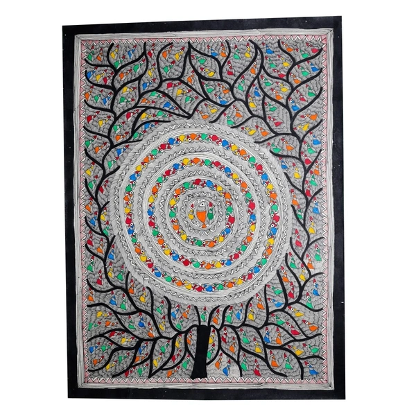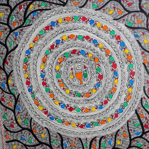 Fairo.Store Madhubani Art: Dancing Fishes and Blossoming Trees - Unframed, 32.2 x 24.2 inches