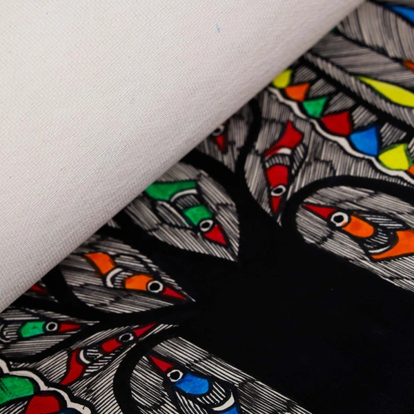 Add a touch of traditional Indian art to your home with this exquisite handmade Madhubani wall hanging painting by Palak Saxena. This painting features an auspicious peacock perched on a tree, symbolizing beauty, grace, and prosperity.