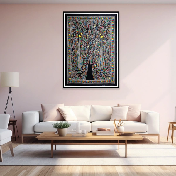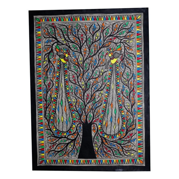 Fairo.Store Madhubani Handmade Wall Hanging Painting Of Auspicious Peacock on Tree for Home Decor (32.2 x 24.2 inches) Traditional Art for Bedroom Wall & Living Room