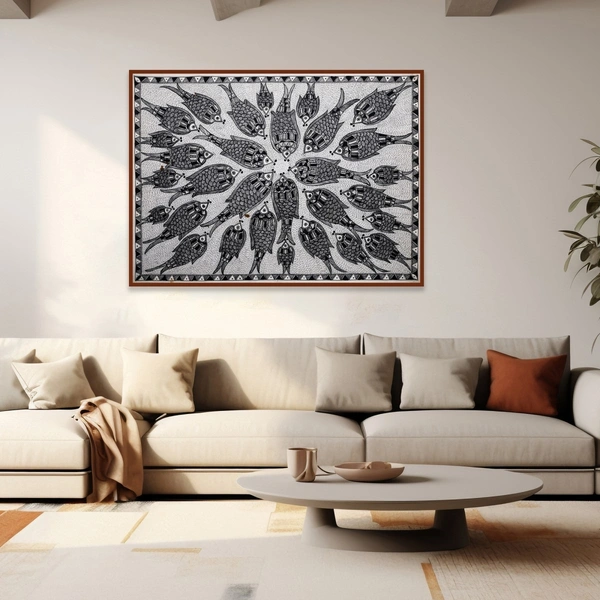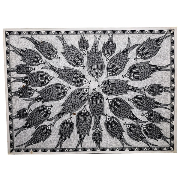Fish Raas Madhubani Painting Unframed 32.2 x 24.2 inches