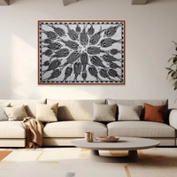 Transform your space with the enchanting allure of Madhubani artistry embodied in Palak Saxena's "Fish Raas" painting. This captivating piece, measuring 32.2 x 24.2 inches, depicts a harmonious dance of colorful fish, a central theme in Madhubani tradition symbolizing abundance and prosperity. Crafted with precision and passion, this unframed masterpiece offers a glimpse into the vibrant culture of Mithila, India. Elevate your decor with this stunning Madhubani painting, a true celebration of nature's beauty and grace.