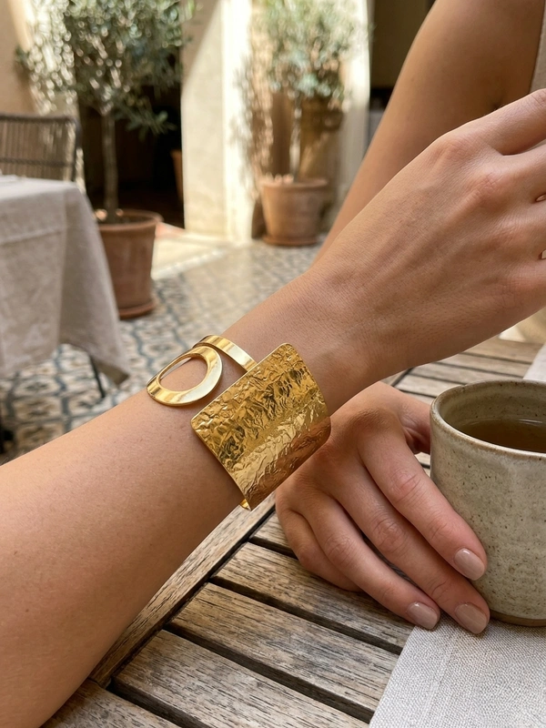 Geometric Open Cuff Bracelet for Women | Adjustable Statement Bangle | Bold Wrist Chain Style Festival Jewelry