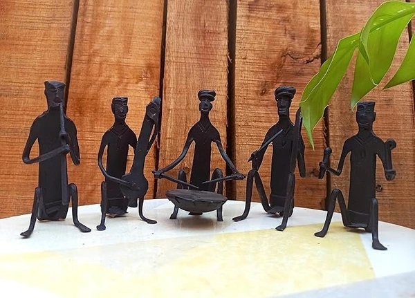 Enhance your space with the charm of Indian artistry through this Wrought Iron Tribal Musician Band Set of 5. Each figurine is meticulously handmade by skilled artisans using traditional Pitva wrought iron techniques, representing the vibrant culture of tribal musicians. Crafted from high-quality metal, these figurines are durable, finely detailed, and beautifully finished. Perfect for home décor, office tables, or gifting, this elegant set adds a touch of ethnic beauty and artistic flair to any setting. Whether placed in your living room, hallway, or workspace, these musicians bring a sense of rhythm, harmony, and creativity to your surroundings