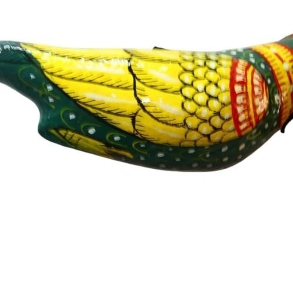 | Description | Bring a touch of vibrant Indian artistry into your home with this exquisite Paper Mache Handpainted Indian Green Parrot Bird. Meticulously handcrafted by skilled artisans, this ornament showcases the intricate art of hand painting, capturing the beauty and vibrancy of the majestic parrot. Hang this decorative bird in your living space, garden, or patio, and let its stunning hues and intricate details captivate your guests. Crafted with utmost care and attention to detail, this handmade bird ornament is not just a decorative piece but a celebration of India's rich cultural heritage. Embrace the charm of traditional Indian craftsmanship and add a touch of elegance to your surroundings with this one-of-a-kind hanging bird ornament. Measuring approximately 20-25 cm in length (7.9-9.8 inches), it's the perfect size to make a statement without overwhelming your space. Whether you're an avid collector of unique decor or simply appreciate the beauty of handcrafted art, this Paper Mache Handpainted Indian Green Parrot Bird is a must-have addition to your collection. |
