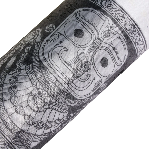 The painting Auspicious Pattachitra paintings made by an authentic artist from Orissa .Pattachitra paintings on Tussar silk are a beautiful and traditional art form from the state of Orissa in India. Pattachitra is a style of painting known for its intricate details and vibrant colors, often depicting mythological themes or scenes from daily life. When these paintings are done on Tussar silk, it adds a unique and luxurious touch to the artwork due to the rich texture and sheen of the silk fabric