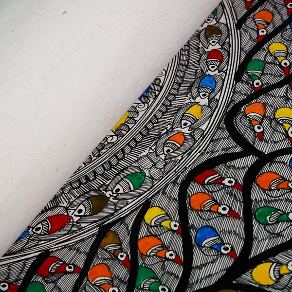 Palak Saxena Madhubani Fishes and Trees Handpainted Art Painting celebrates traditional Indian artistry with vibrant fishes swimming among intricately drawn trees, elevating home decor with each brushstroke