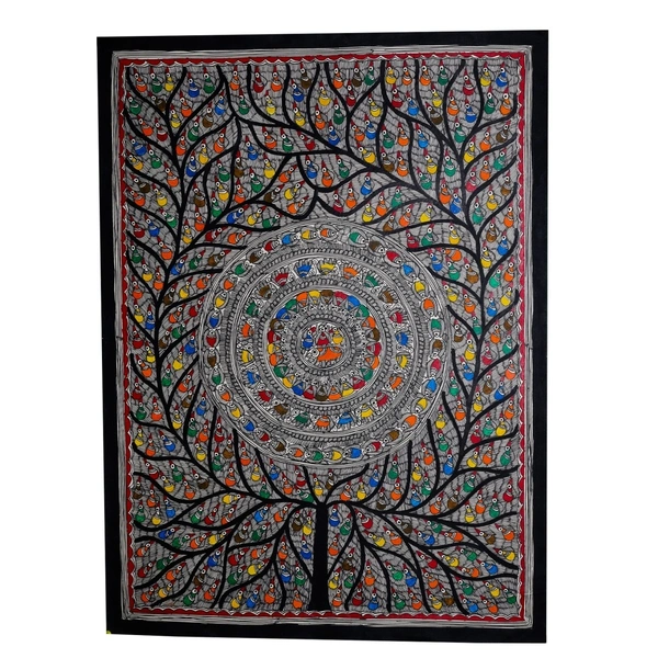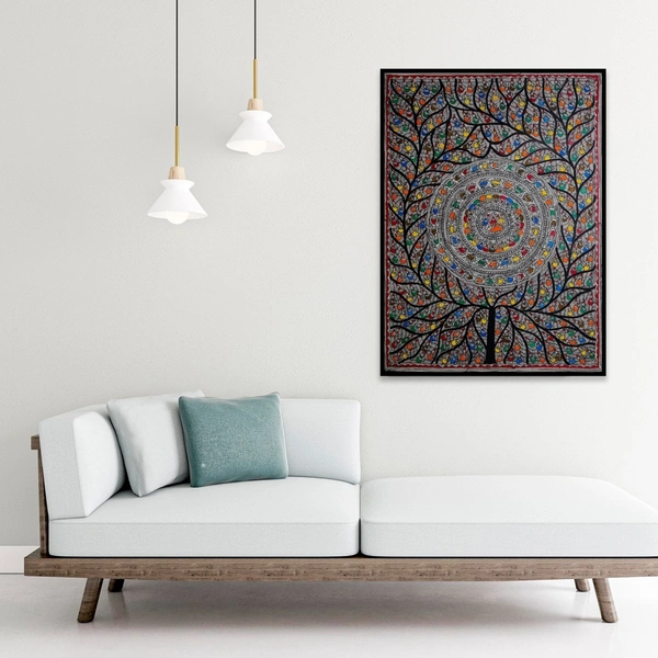 Add a touch of traditional Indian art to your home with the Palak Saxena Madhubani Fishes and Trees Handpainted Art Painting