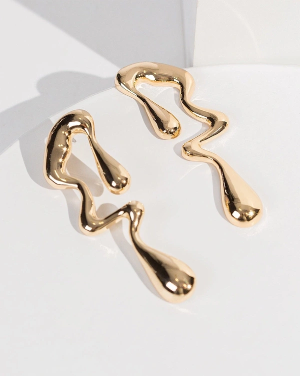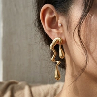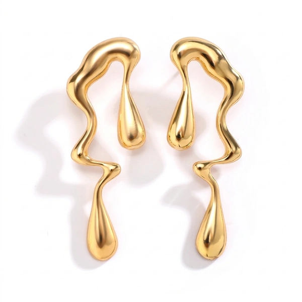 Minimalist Liquid Drop Stud Earrings for Women | Irregular Water-Inspired Geometric Design | Trendy Fluid Style Statement Fashion Jewelry