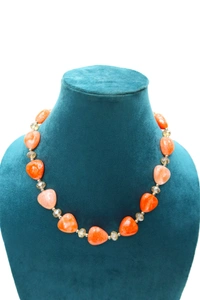 Add a playful and graceful accent to your look with this heart-shaped artificial jewellery in a beautiful Orange color. Crafted with care from premium materials, it offers a shiny and polished appearance while being lightweight for everyday comfort. This piece is an ideal accessory for women and girls who want to enhance their style effortlessly. Whether you're dressing up for a party, gifting someone special, or adding a fun element to your casual wear, this Orange heart design jewellery is perfect for every occasion. Let your style bloom with a touch of love and charm!