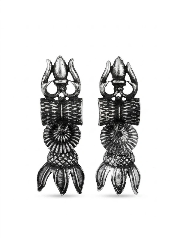 Oxidised German Silver Trishool Drop Earrings for Women | Traditional Tribal Antique Finish Dangle