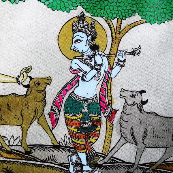 A beautiful painting of Krishna’s cows and his friend enjoying the wonderful music of Krishna’s flute.