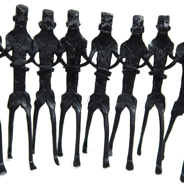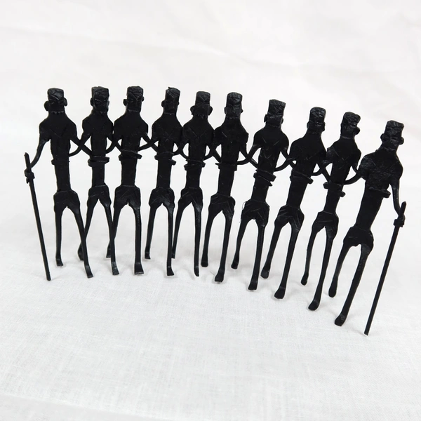 Antique Bastar Tribal Art Home décor | Handmade Showpiece Gifts - Table Decor, Corner Shelves & Office Decor Showpiece Handicraft - 5 Walking Tribals - Black