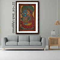 As Radha and Krishna stand locked in a tender embrace, surrounded by lush foliage and celestial beings, their love story unfolds like a poetic symphony. The gentle curves of their forms and the subtle interplay of light and shadow evoke a sense of transcendent beauty and harmony.