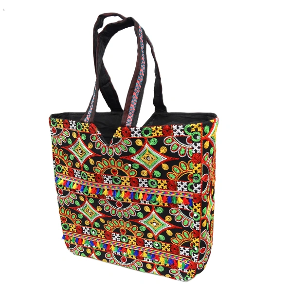Palak Saxena Handmade Rajasthani Double-Sided Embroidery Multicolor Regular Tote Bag for Women
