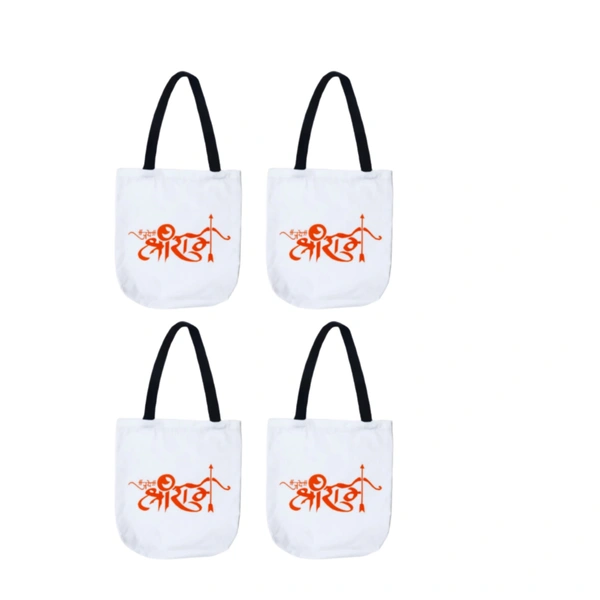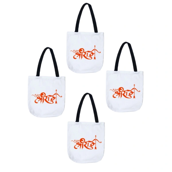 Jai Shri Ram Tote Bags For Women College Bag For Girls Traveling, Shopping, Grocery, Daily Use (Pack of 4)
