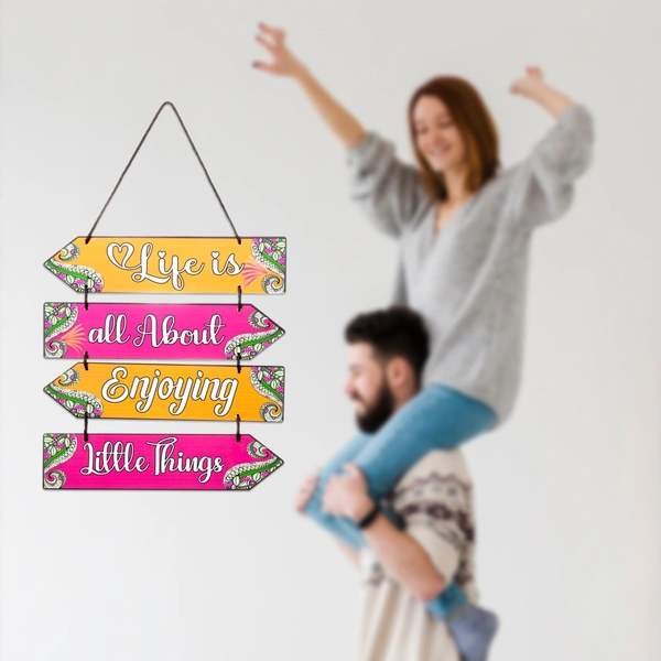 Transform your living space into a haven of positivity with our Wooden Wall Hanging. Crafted with care, this charming piece features the uplifting message, "Life is All About Enjoying Little Things," reminding you to find joy in the everyday moments. Hang it in your home or office for a touch of rustic charm and daily inspiration.visit our storefront 'Fairo Store'