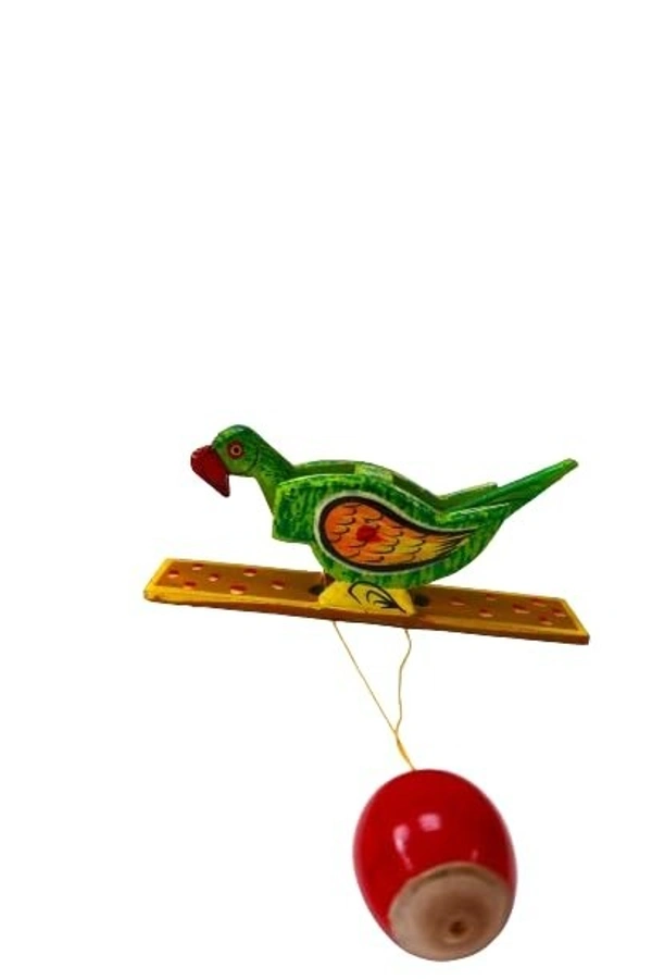 PALAK SAXENA Handicraft Wooden Handpainted Animal Shape Handheld Revolving Movement Toy for Kids (Parrot)
