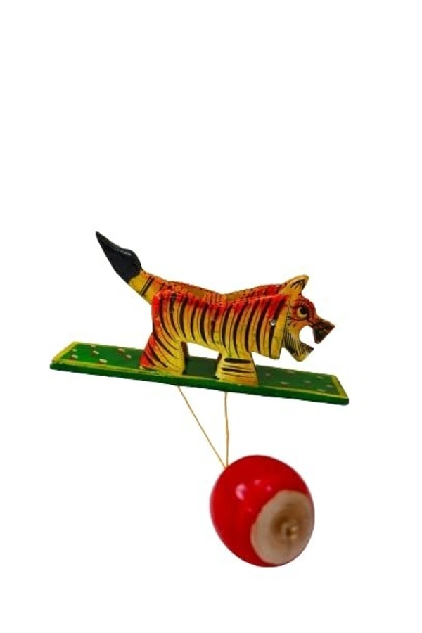 Rajasthan Handicraft Wooden Handpainted Animal Shape Handheld Revolving Movement Toy for Kids ( Lion)