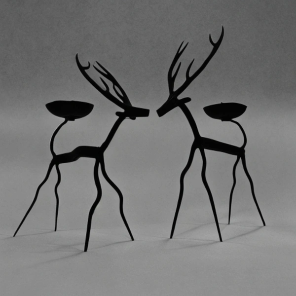 - Set of 2 handcrafted wrought iron reindeer tea light candle holders