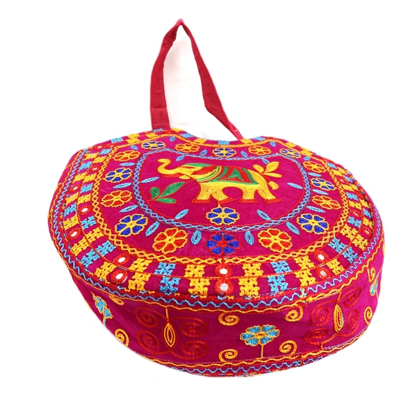 Royal Looking Cotton Traditional Ethnic Rajasthani Jaipuri Embroidered Hand bag/Purse for Girls Women (MagentaElephant)