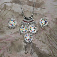 | Description | Elevate your look with this exquisite traditional oxidized silver necklace set, designed to add elegance and charm to any outfit. Featuring intricate detailing and a vintage oxidized finish, this jewellery set is perfect for festive occasions, weddings, parties, and everyday ethnic wear. Pair it with sarees, lehengas, or Indo-western outfits to make a stunning style statement. Step into timeless elegance with this stunning oxidized silver necklace set – a must-have for every jewellery lover! |
